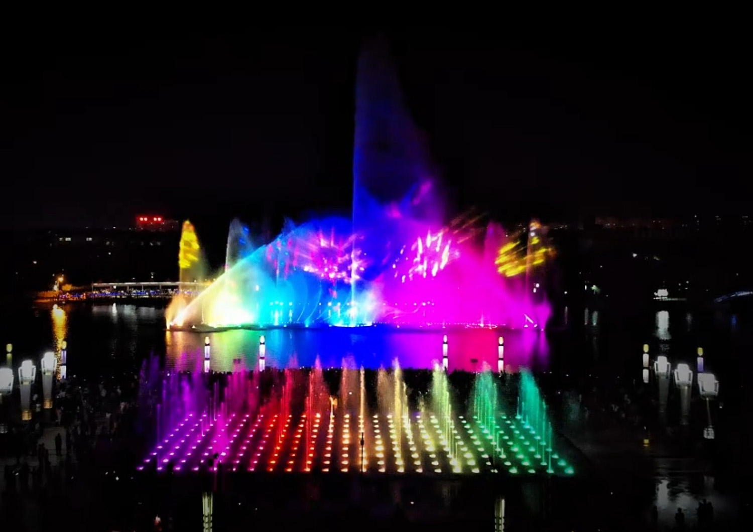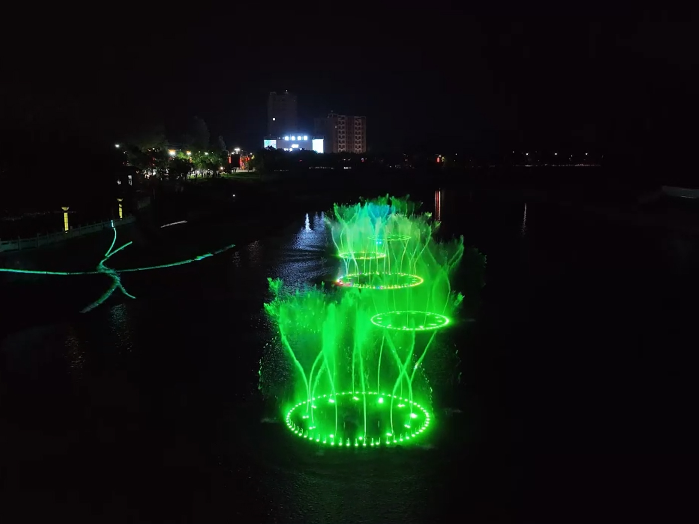 藝術噴泉宛如靈動的舞者。 水柱時而高聳入云,似利劍 直插天際;時而低緩綿柔, 像輕紗隨風搖曳。它能變幻 出蓮花盛開般的造型,也可 交織成水幕迷宮。燈光映照 下,或紅似火,或藍如海 ,不同水秀效果帶來如夢 如幻的視覺盛宴。